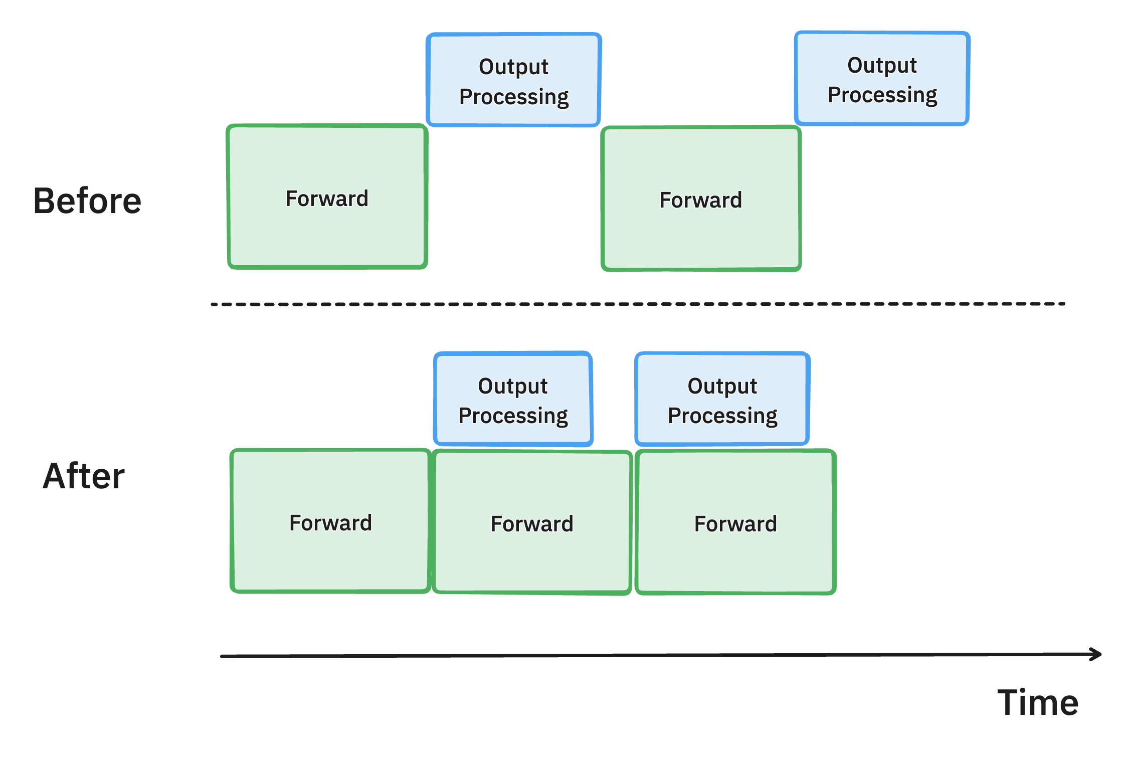 Continuing our efforts to maximize GPU utilization, we also revamped how the model output is processed in vLLM.
