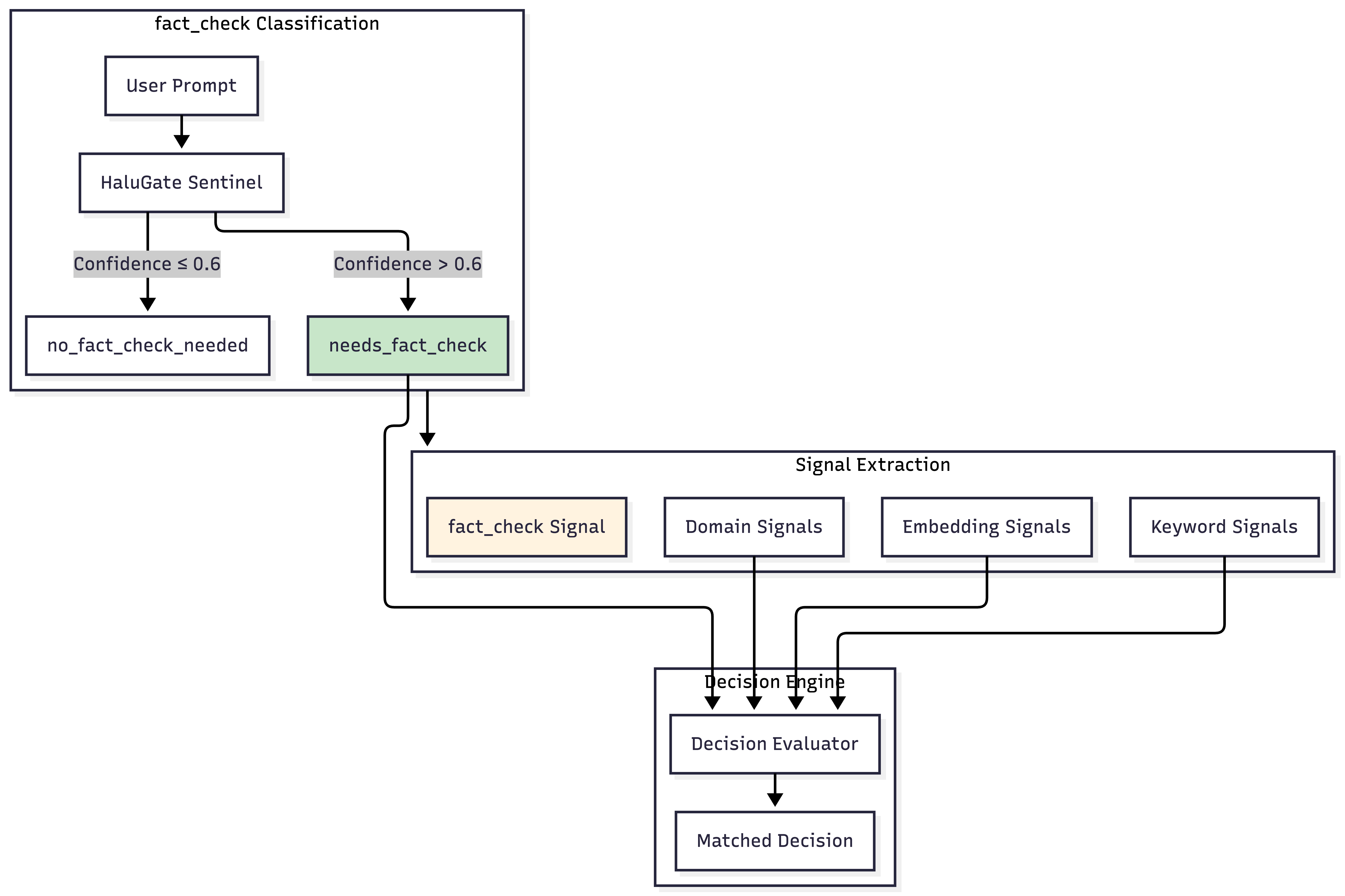 HaluGate doesn’t operate in isolation—it’s deeply integrated with our Signal-Decision Architecture as a new signal type and plugin.
