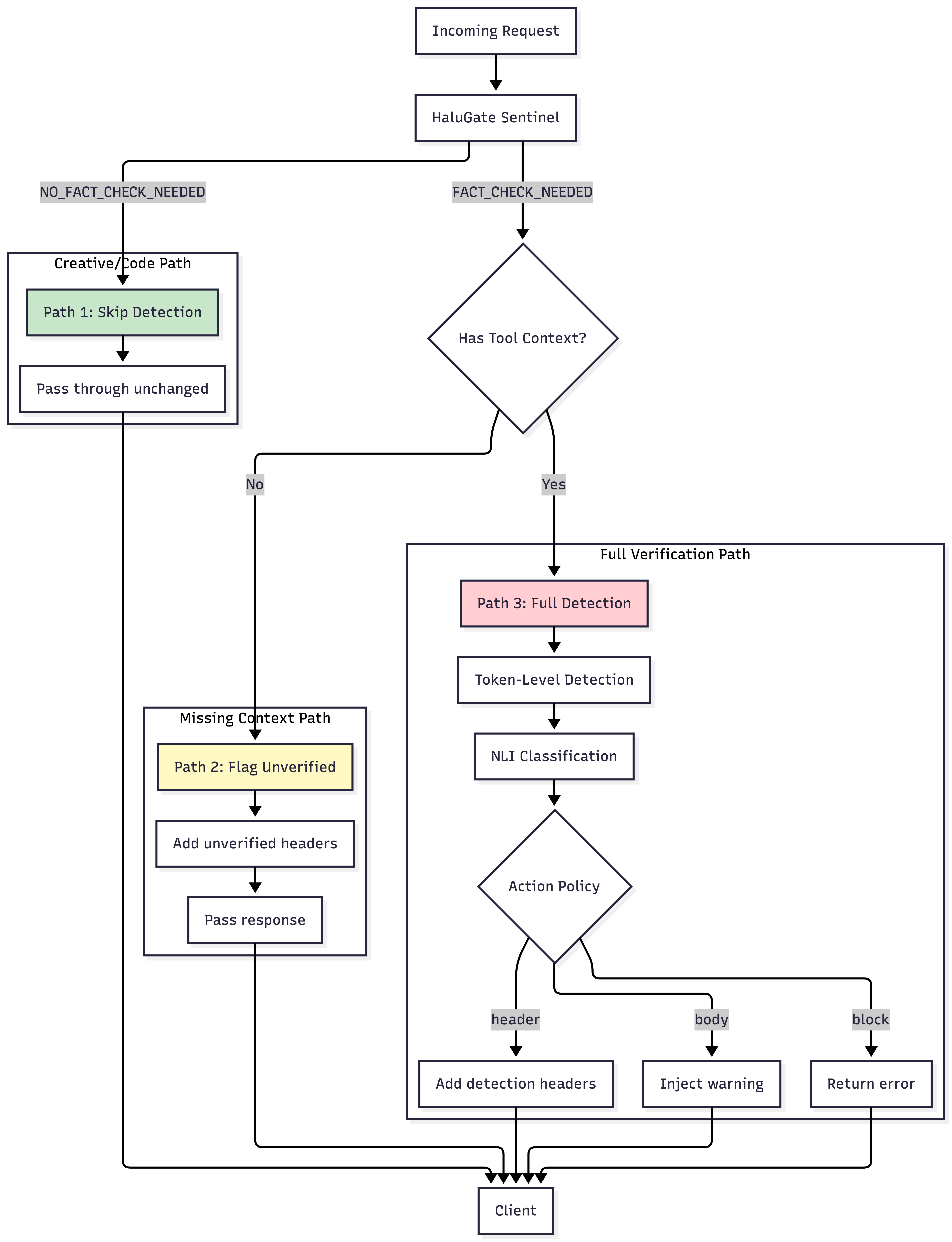 HaluGate implements a conditional two-stage pipeline that balances efficiency with precision: