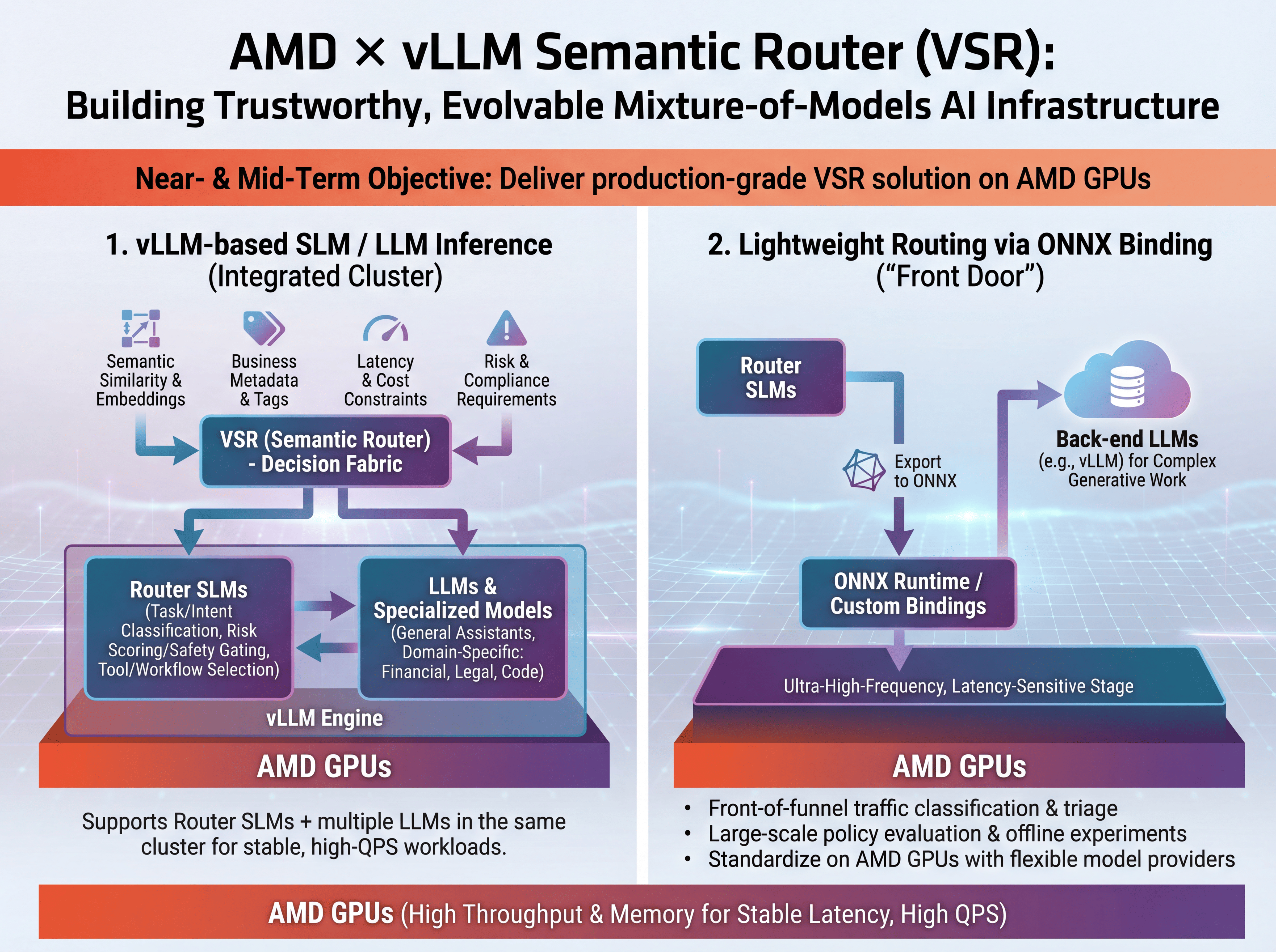 In short, this is about co-building trustworthy, evolvable multi-model AI infrastructure—with AMD GPUs as a core execution and validation layer, and vLLM Semantic Router as the intelligent control plane that makes the entire system understandable, governable, and ready for real workloads.